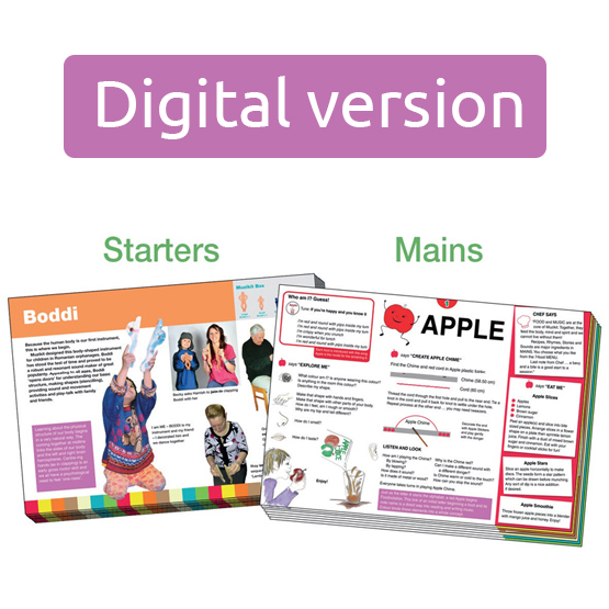 The Muzikit Handbook offers over 100 pages of art and craft ideas, games, songs, music scores, stories, and more. The Handbook has two parts, Starters and Mains.